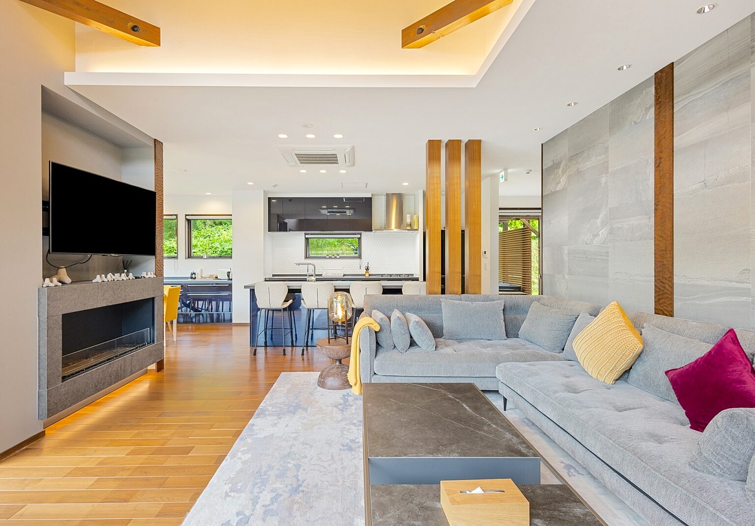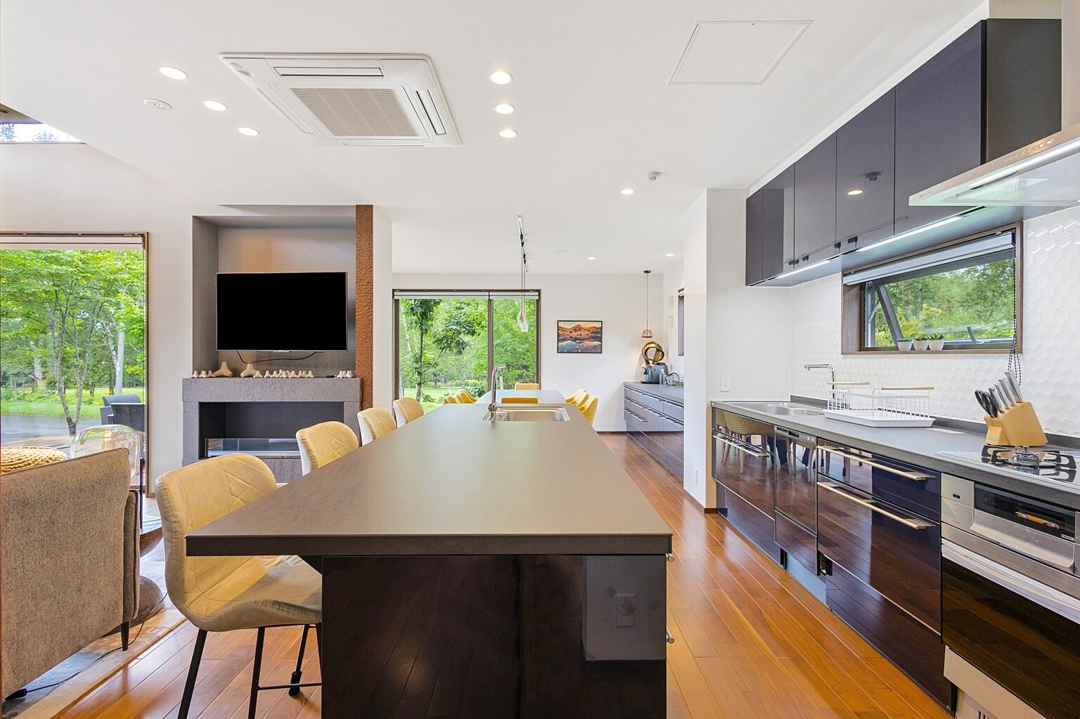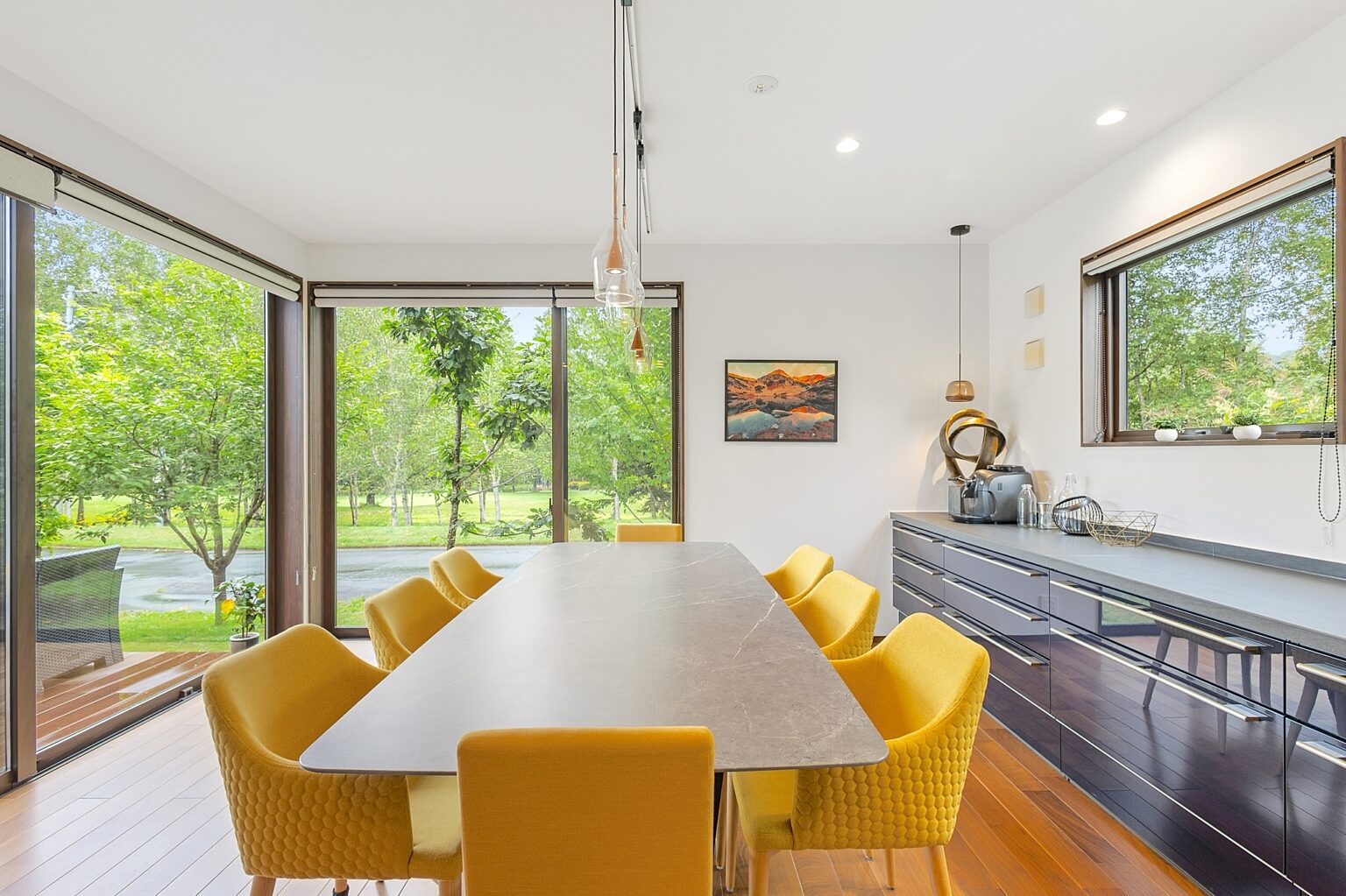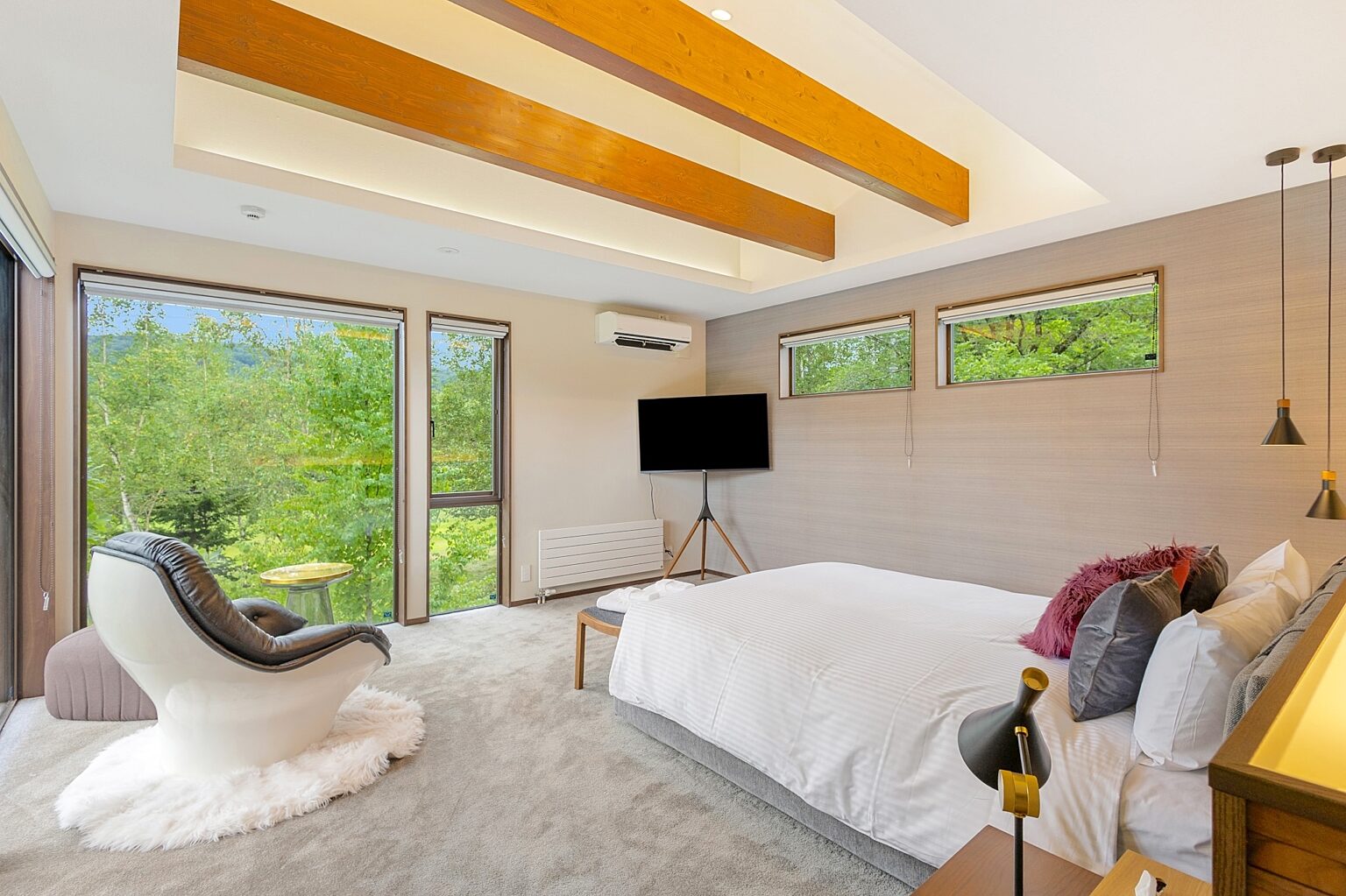 Mineta - Rusutsu Chalets is located just moments away from Hokkaido’s largest resort, Rusutsu is the only estate in Hokkaido located inside a golf course. This spacious 4 bedroom / 4 bathroom house is designed to take advantage of all seasons. A cozy warm chalet in winter turns into an open breezy social home in summer. Large outdoor decks invite barbecues and social gatherings while you breathe in the crisp Hokkaido evening air. Kids can escape to one of the many rooms or corners of the house while parents and friends enjoy drinks by the fire.