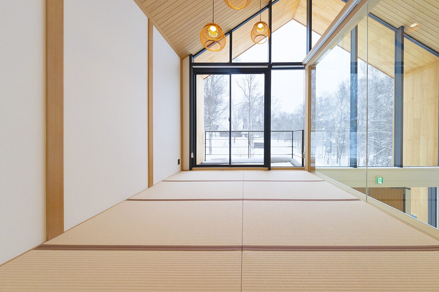 オープンプランのリビング、ダイニングは、家族旅行や友人とのエスケープを楽しむための楽しく機能的なスペースです。日本風の大浴場と畳の部屋は、明るく温かみのあるキャビンです。